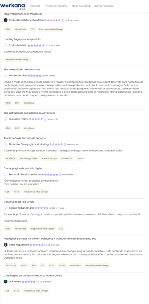 Somo 5 estrelas por todos eles! Veja o Feedback que eles deixaram:
